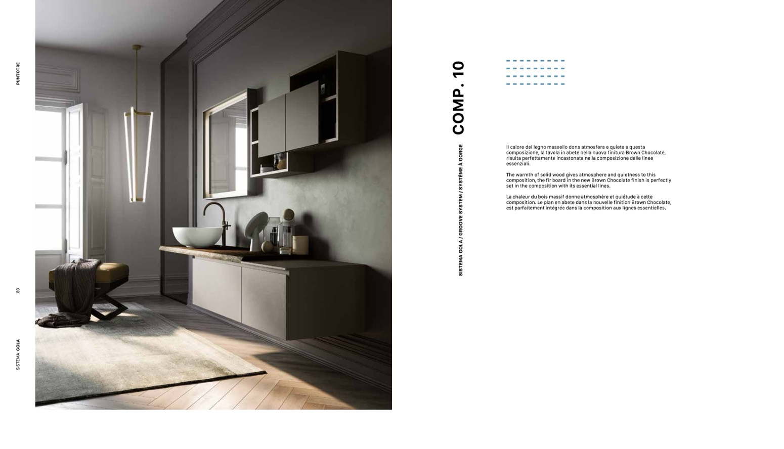 composition. Le plan en abete dans la nouvelle finition Brown Chocolate,