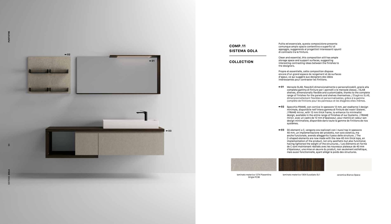 completa gamma di finiture per i pannelli e le mensole stesse. / SLAB