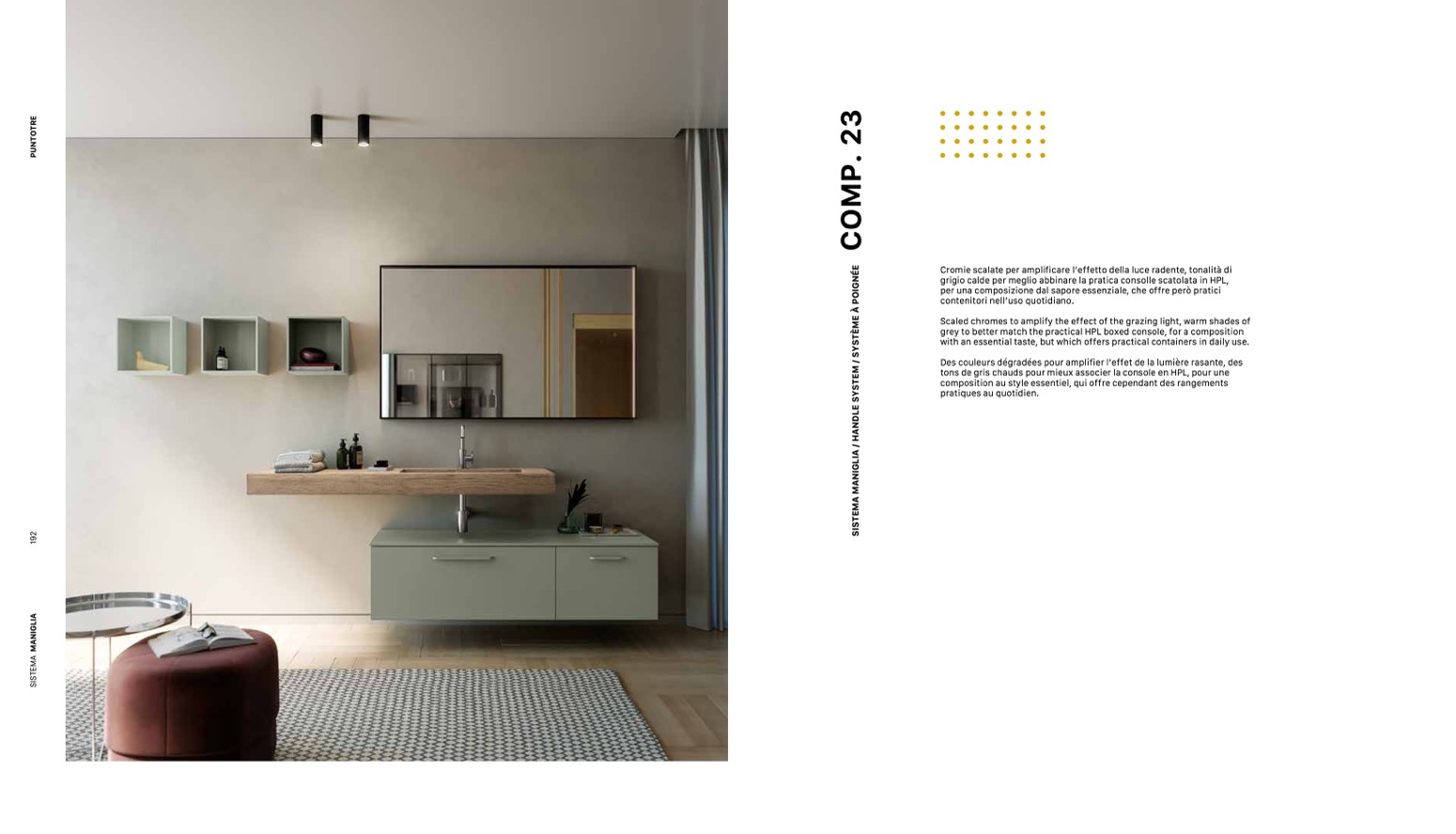 grigio calde per meglio abbinare la pratica consolle scatolata in HPL,
