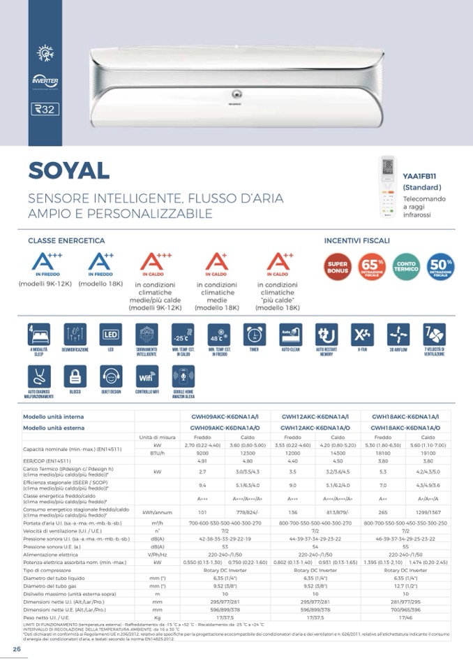 LIMITI DI FUNZIONAMENTO (temperatura esterna) - Raffreddamento: da -15 °C a +52 °C - Riscaldamento: da -25 °C a +24 °C