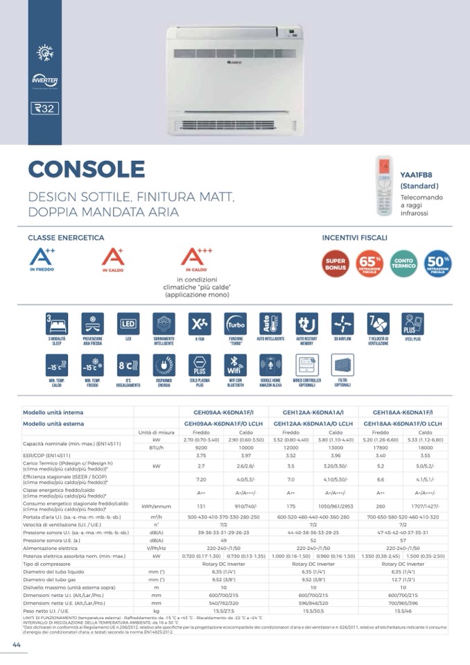 LIMITI DI FUNZIONAMENTO (temperatura esterna) - Raffreddamento: da -15 °C a +43 °C - Riscaldamento: da -22 °C a +24 °C