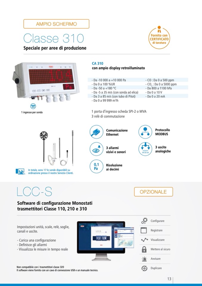 - Da -5 a 35 m/s (con sonda ad elica)