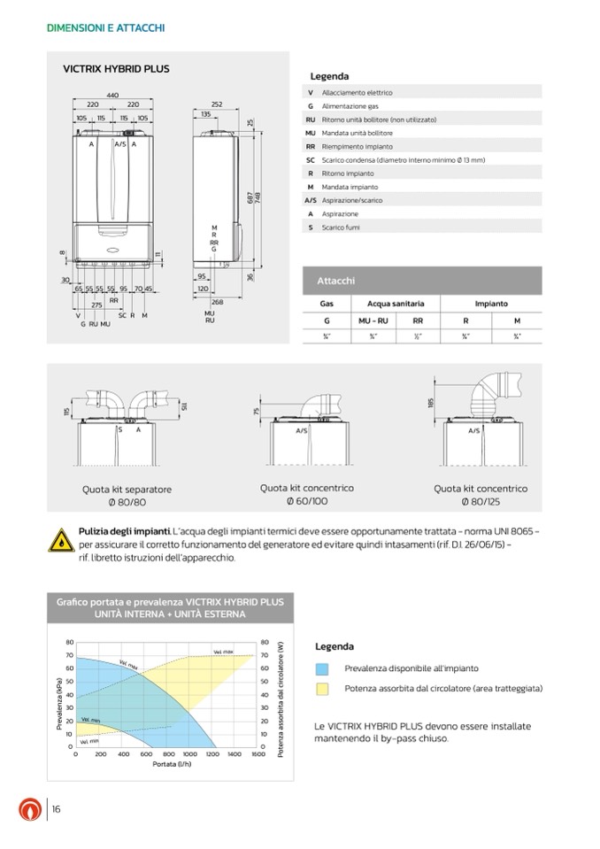 Scarico condensa (diametro interno minimo Ø 13 mm)