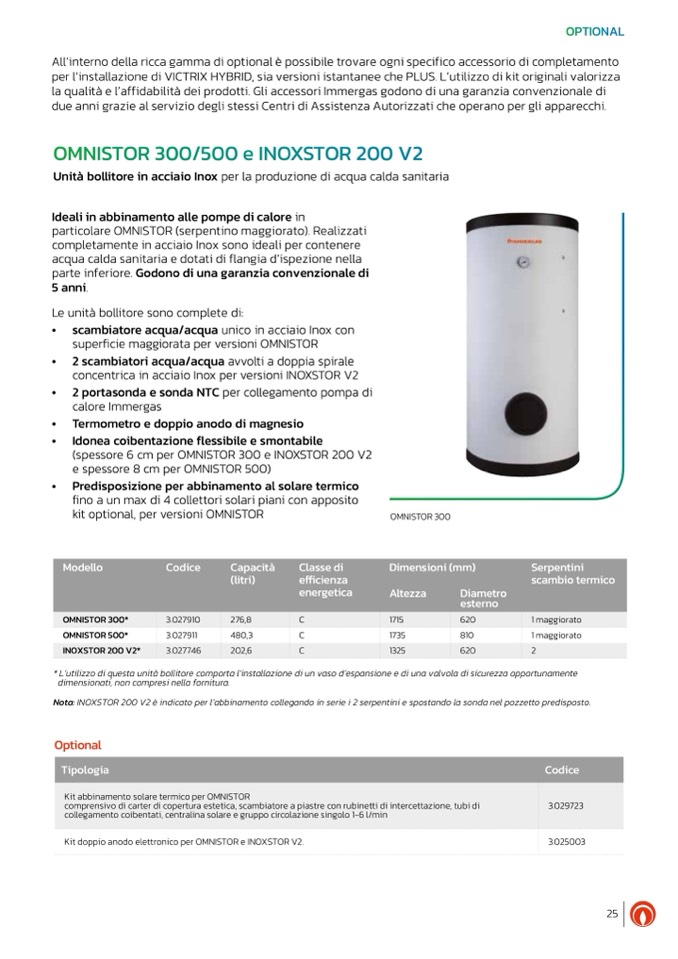 Nota: INOXSTOR 200 V2 è indicato per l’abbinamento collegando in serie i 2 serpentini e spostando la sonda nel pozzetto predisposto.