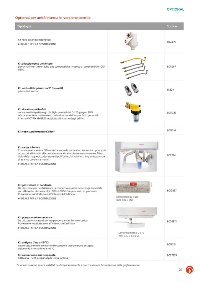 * I kit non possono essere installati contemporaneamente e non consentono l’installazione della griglia inferiore.