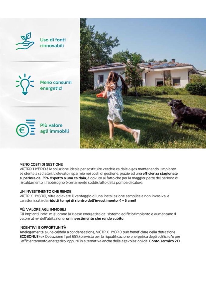 Analogamente a una caldaia a condensazione, VICTRIX HYBRID può beneficiare della detrazione