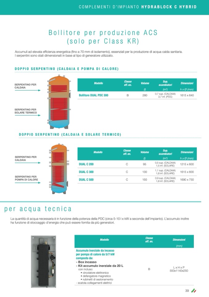 Accumuli ad elevata efficienza energetica (fino a 70 mm di isolamento), essenziali per la produzione dI acqua calda sanitaria.