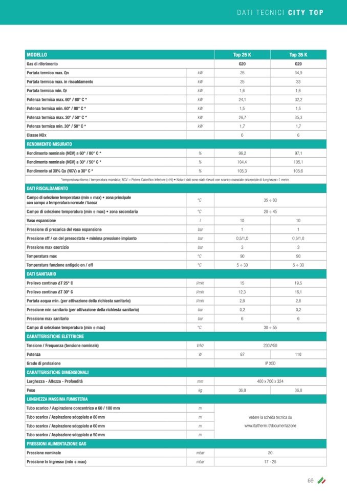 *temperatura ritorno / temperatura mandata; NCV = Potere Calorifico Inferiore (=Hi) • Nota: i dati sono stati rilevati con scarico coassiale orizzontale di lunghezza=1 metro