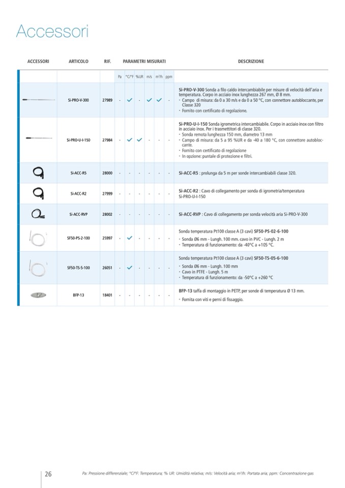 Pa: Pressione differenziale; °C/°F: Temperatura; % UR: Umidità relativa; m/s: Velocit