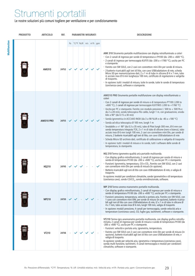 ∙ Funzioni: pressione, temperatura, velocità e portata aria. Fornito con SW SOLE, con