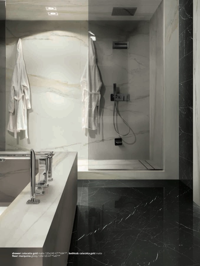 shower: calacatta gold matte 120x240 471/4”x941/2”