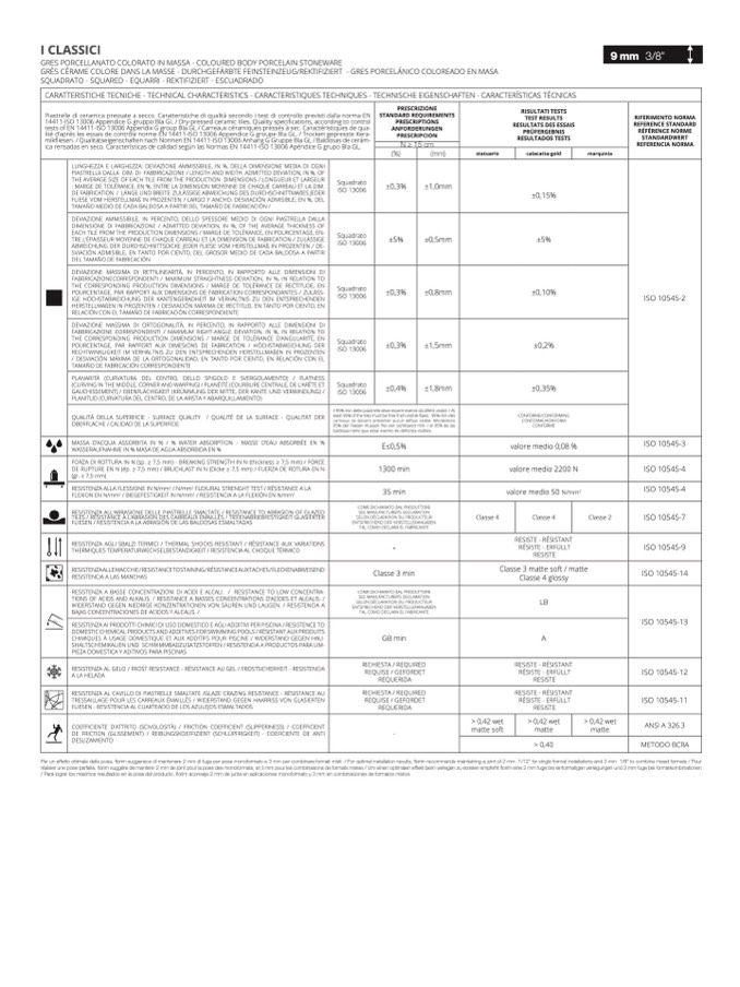 mikfliesen. / Qualitätseigenschaften nach Normen EN 14411-ISO 13006 Anhang G Gruppe BIa GL / Baldosas de cerám-