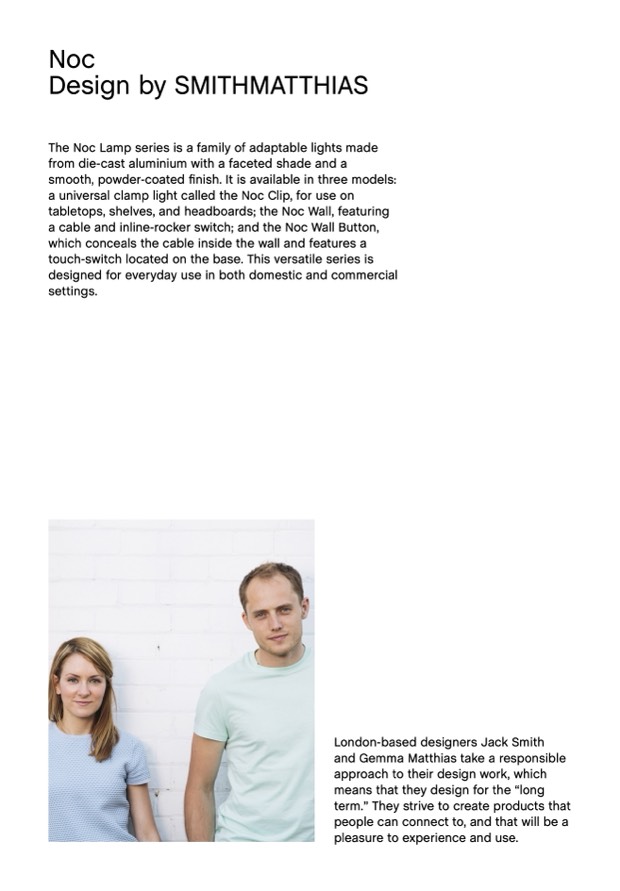 tabletops, shelves, and headboards; the Noc Wall, featuring