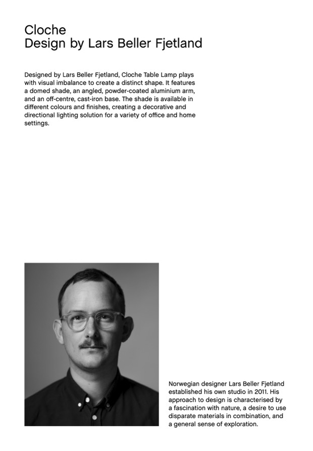 Designed by Lars Beller Fjetland, Cloche Table Lamp plays