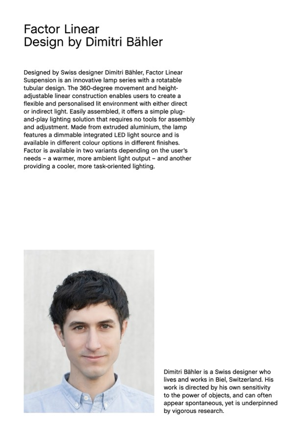Designed by Swiss designer Dimitri Bähler, Factor Linear