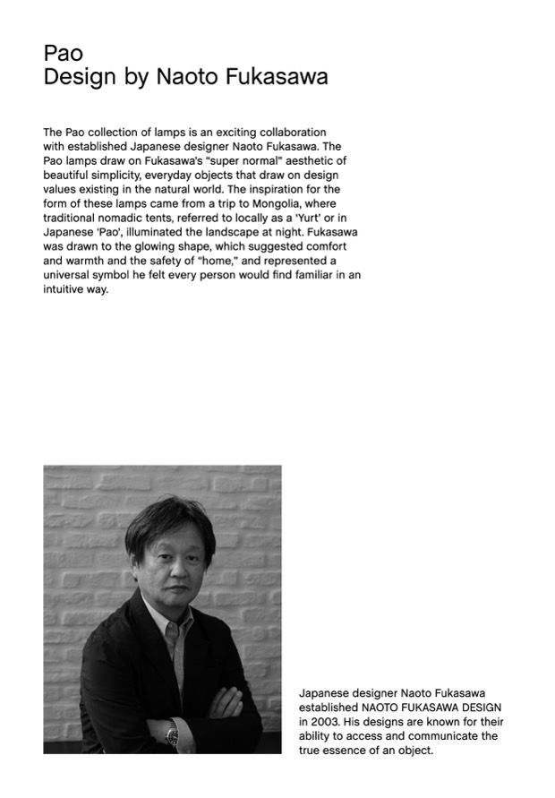 Pao lamps draw on Fukasawa’s “super normal” aesthetic of