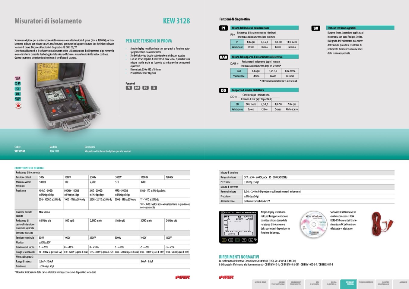 tensioni di prova. Dispone di funzioni di diagnostica PI, DAR, DD, SV.