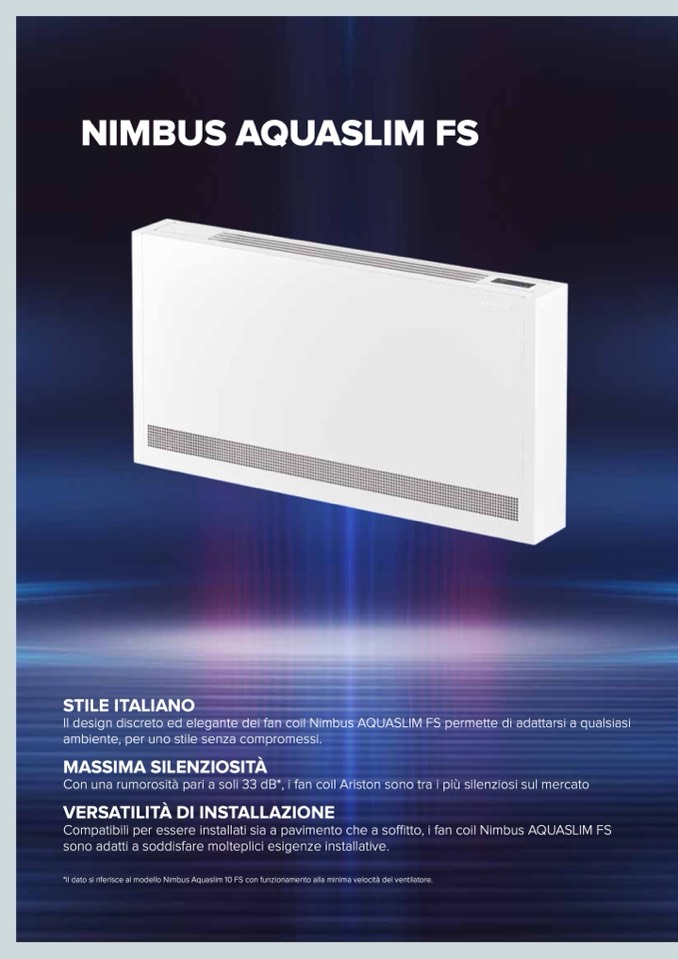 *il dato si riferisce al modello Nimbus Aquaslim 10 FS con funzionamento alla minima velocità del ventilatore.