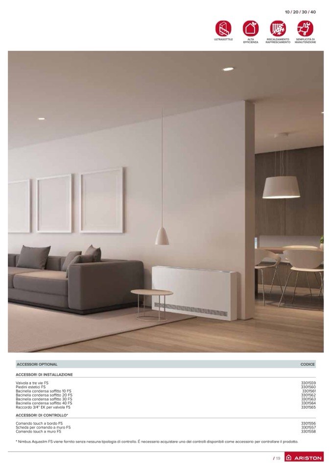 * Nimbus Aquaslim FS viene fornito senza nessuna tipologia di controllo. É necessario acquistare uno dei controlli disponibili come accessorio per controllare il prodotto.