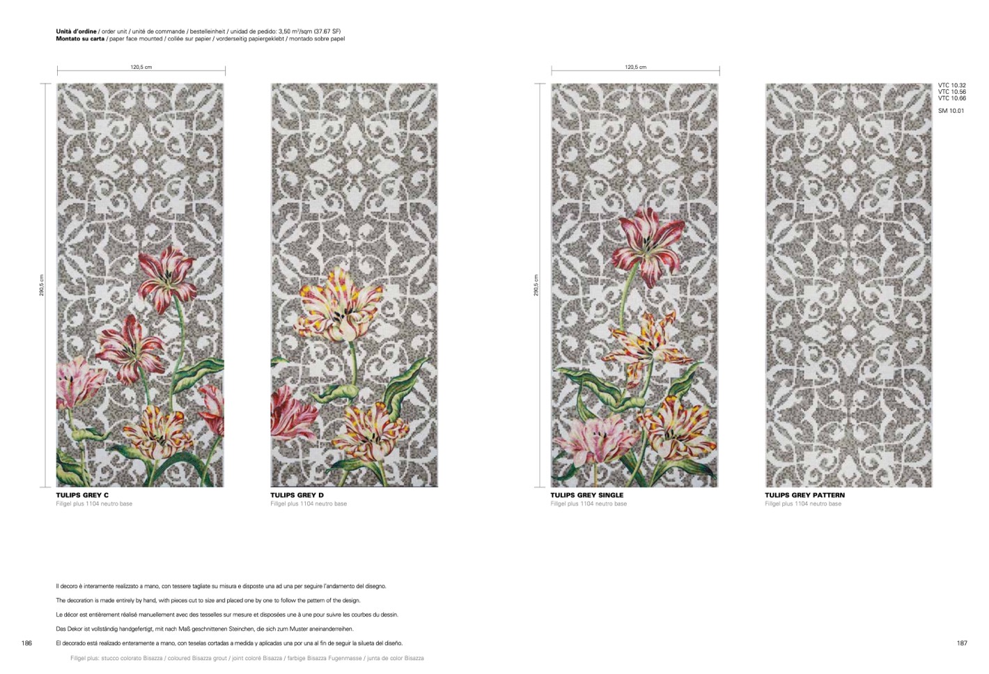Le décor est entièrement réalisé manuellement avec des tesselles sur mesure et disposées une à une pour suivre les courbes du dessin.