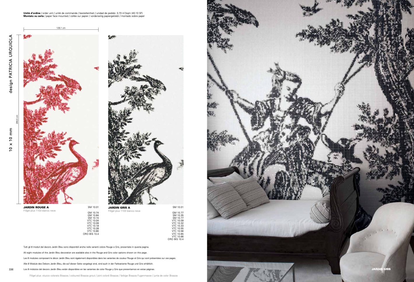 Los 8 módulos del decoro Jardin Bleu están disponibles en las variantes de color Rouge y Gris que presentamos en estas p