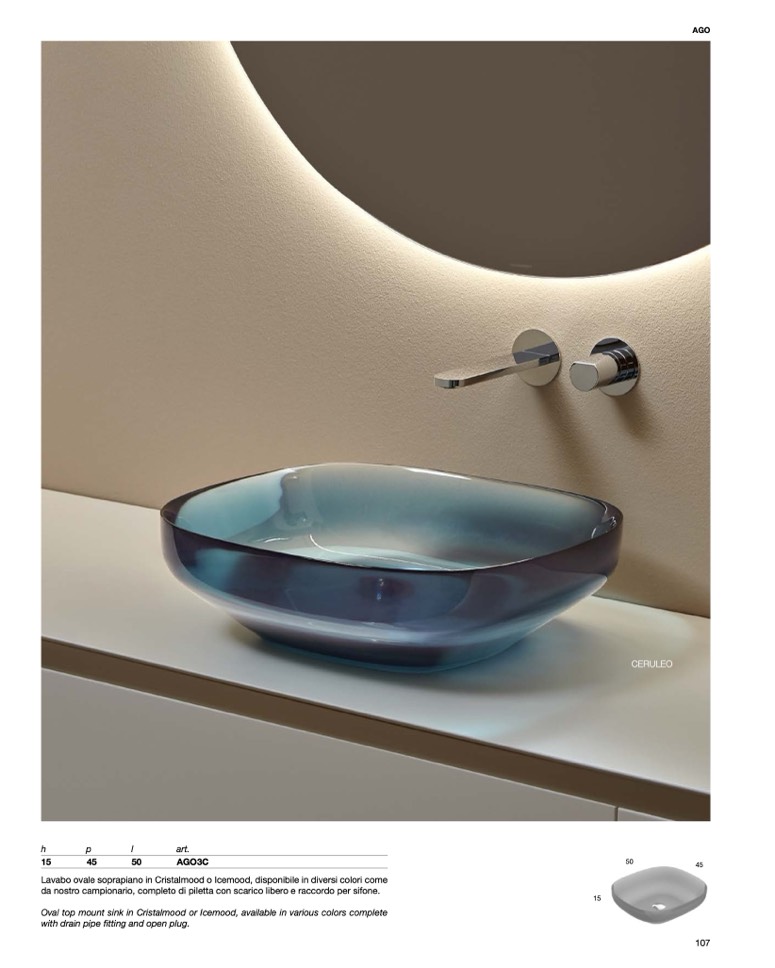 Lavabo ovale soprapiano in Cristalmood o Icemood, disponibile in diversi colori come