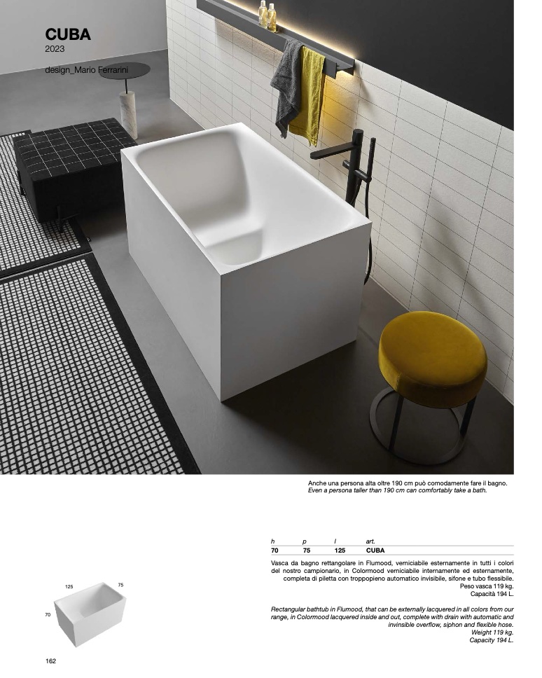 Vasca da bagno rettangolare in Flumood, verniciabile esternamente in tutti i colori
