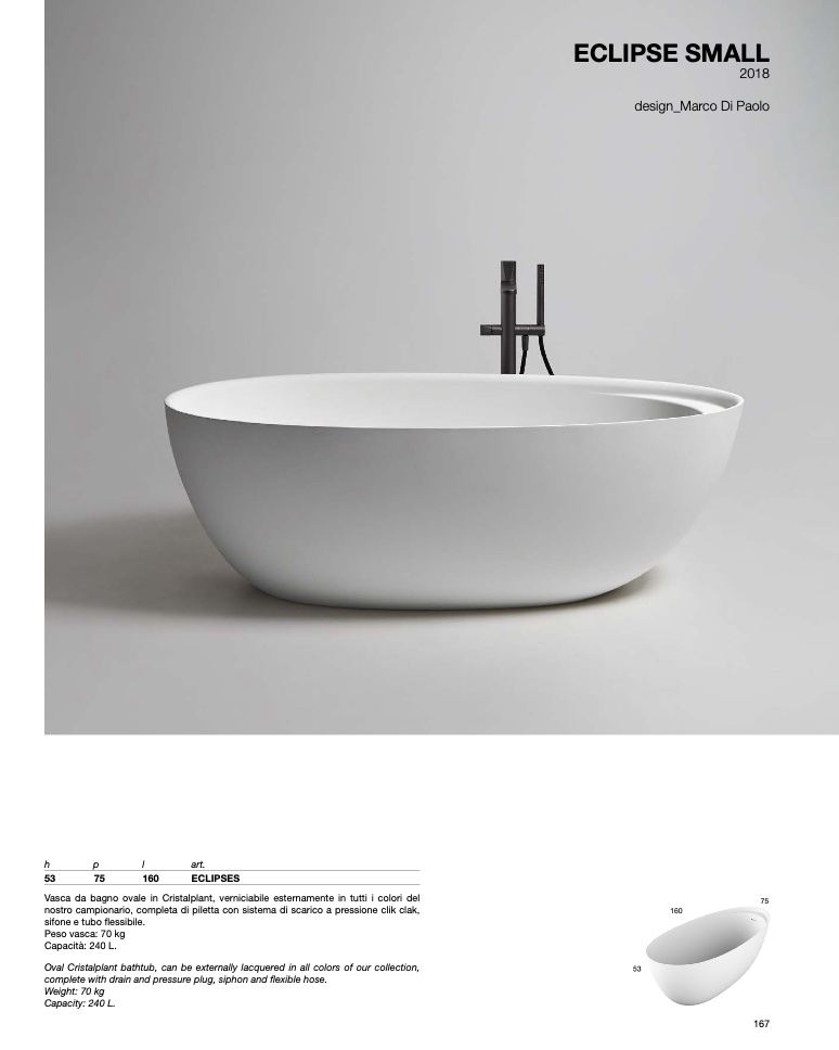Oval Cristalplant bathtub, can be externally lacquered in all colors of our collection,