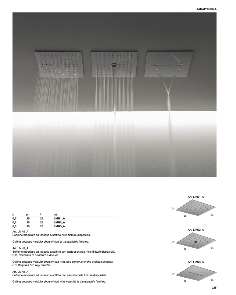 Soffione modulare ad incasso a soffitto con cascata nelle