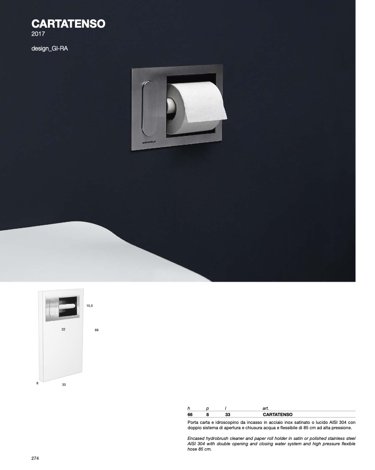 Porta carta e idroscopino da incasso in acciaio inox satinato o lucido AISI 304 con