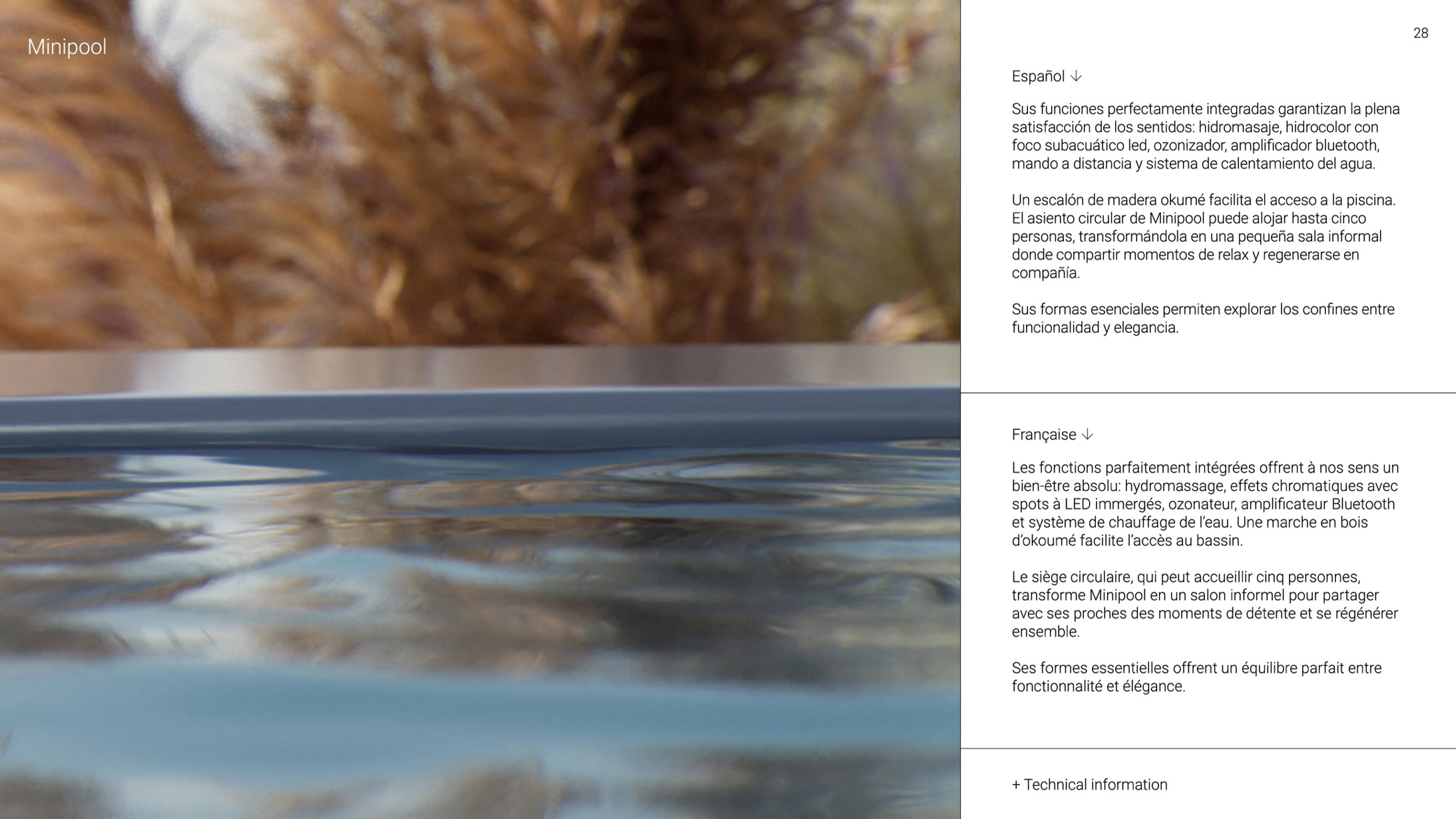 Un escalón de madera okumé facilita el acceso a la piscina.