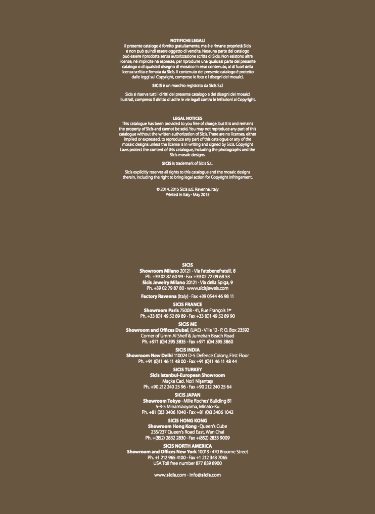 Sicis explicitly reserves all rights to this catalogue and the mosaic designs