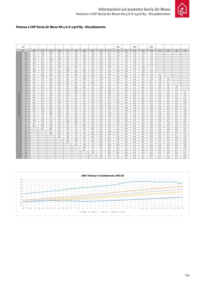 5kW: Potenza in riscaldamento..W35-30
