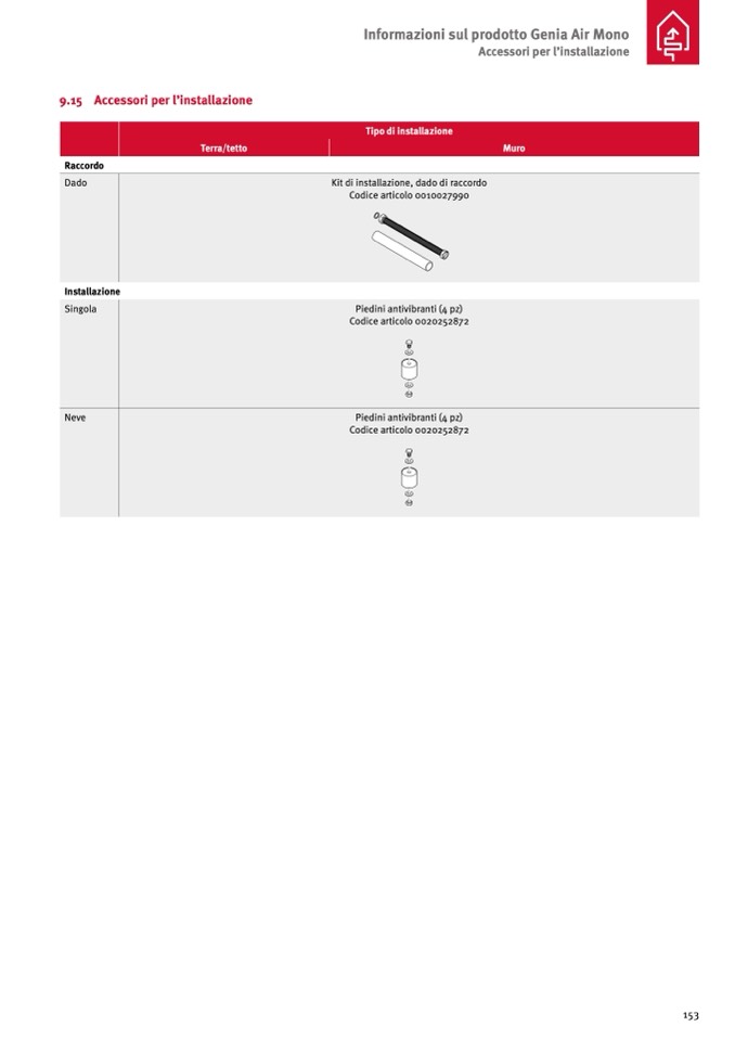 Kit di installazione, dado di raccordo