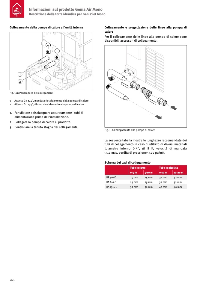 tubi di collegamento in caso di utilizzo di diversi materiali