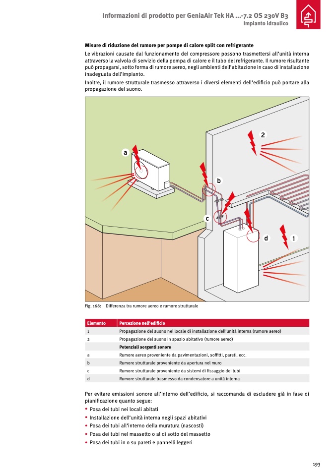 Per evitare emissioni sonore all’interno dell’edificio, si raccomanda di escludere già in fase di
