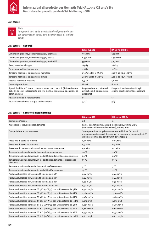Portata volumetrica nominale ΔT 8 K (A7/W55) con unità esterna da 10 kW