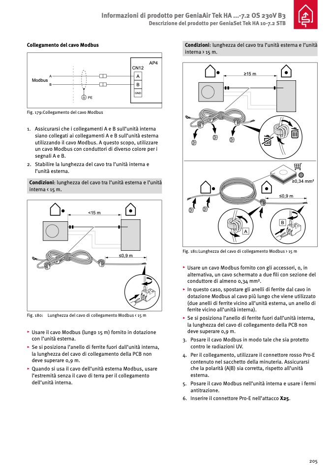 ▸ Usare il cavo Modbus (lungo 15 m) fornito in dotazione