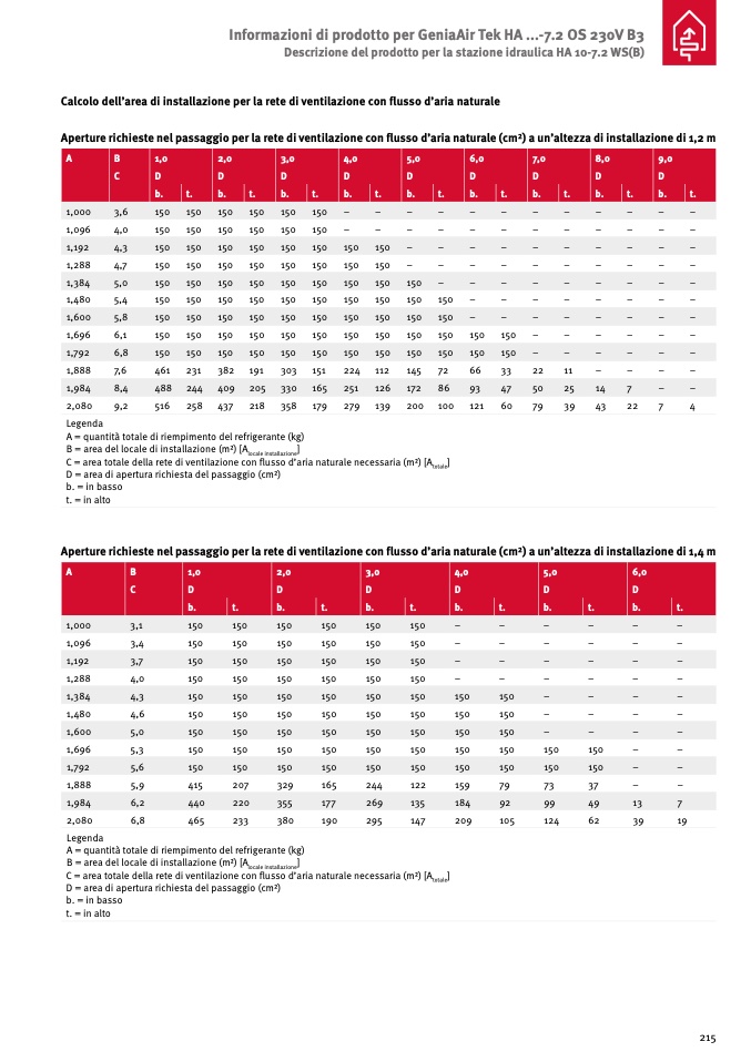 B = area del locale di installazione (m2) [A