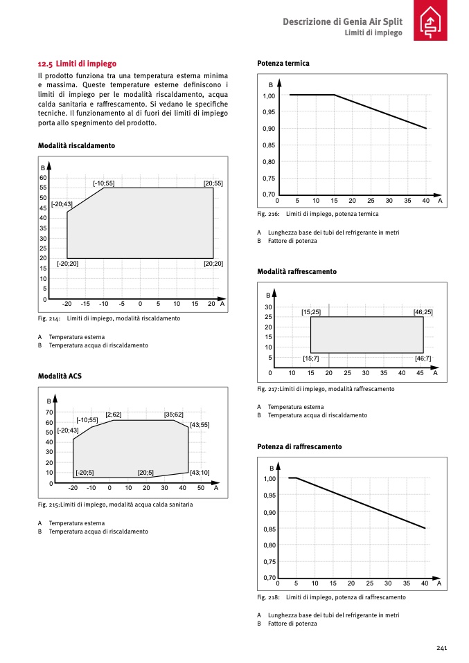 Fig. 218: Limiti di impiego, potenza di raffrescamento