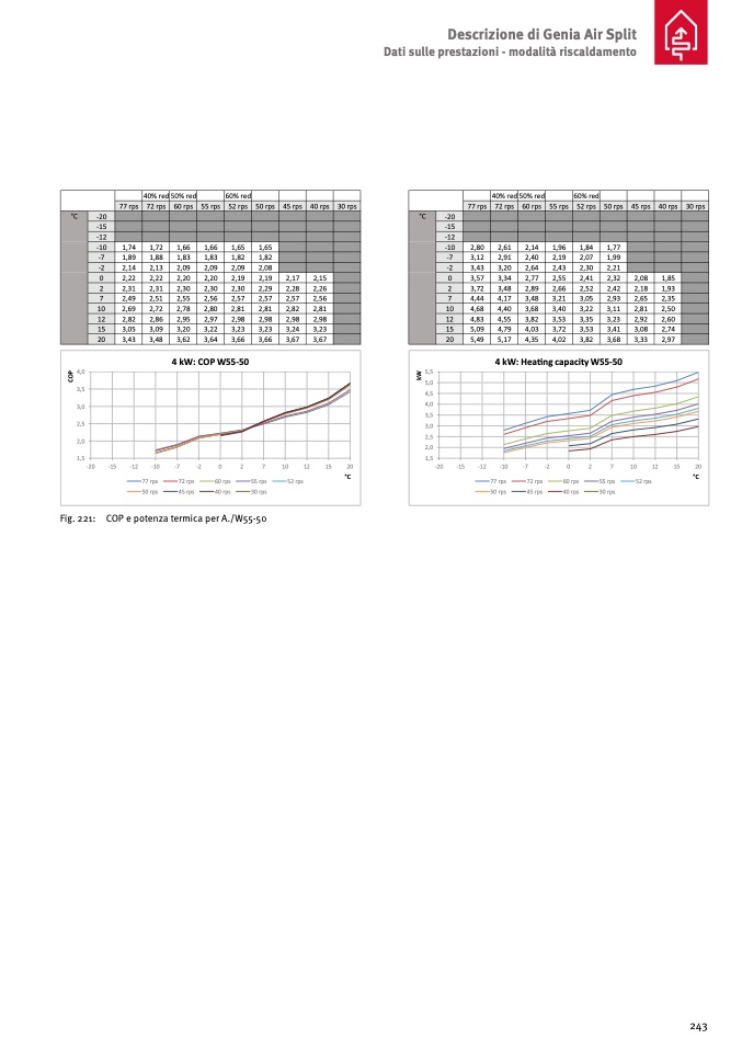 Fig. 221: COP e potenza termica per A./W55-50