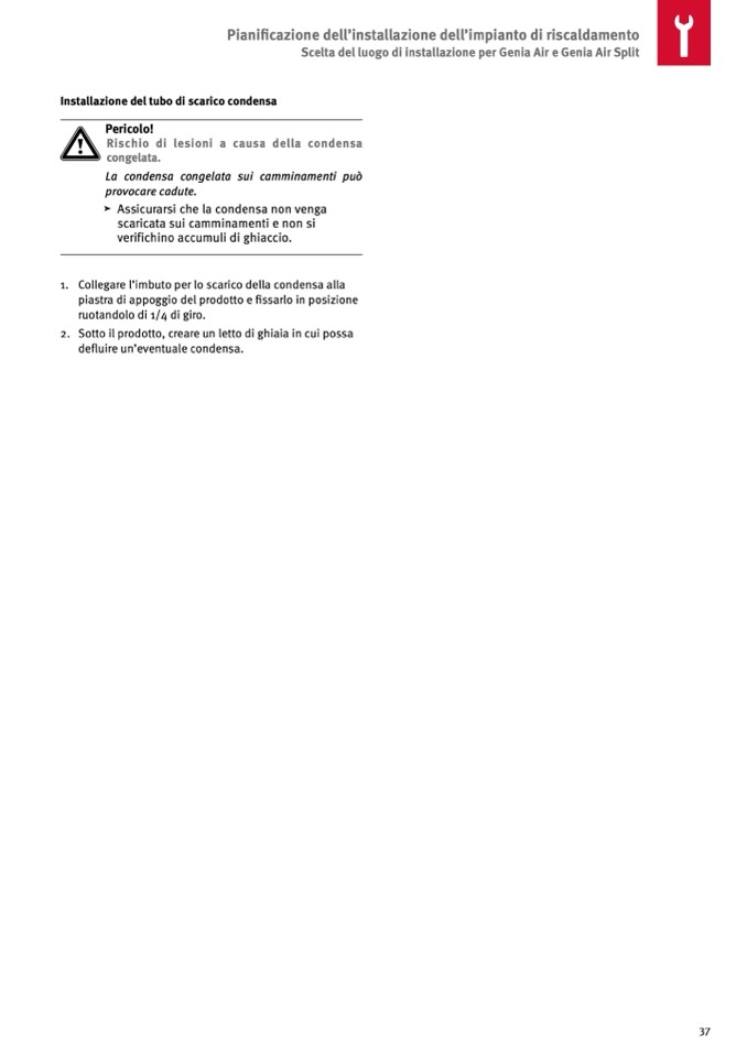 1. Collegare l’imbuto per lo scarico della condensa alla