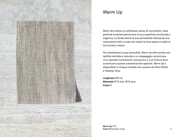 disponibile in cinque tonalità che variano da Wool White