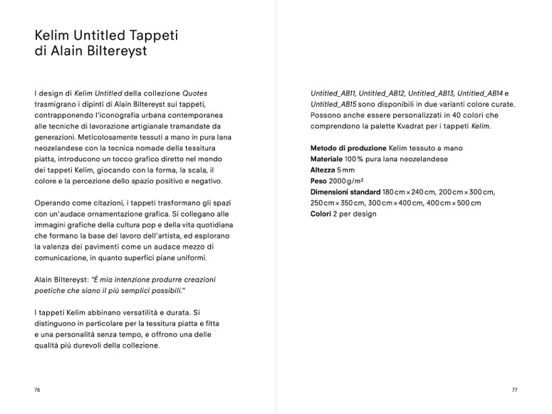 comprendono la palette Kvadrat per i tappeti Kelim.