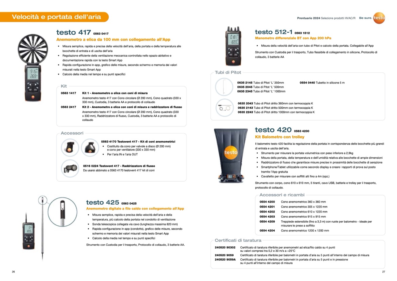 ficato di taratura riferibile per balometri in portata d’aria su 5 punti e in pressione