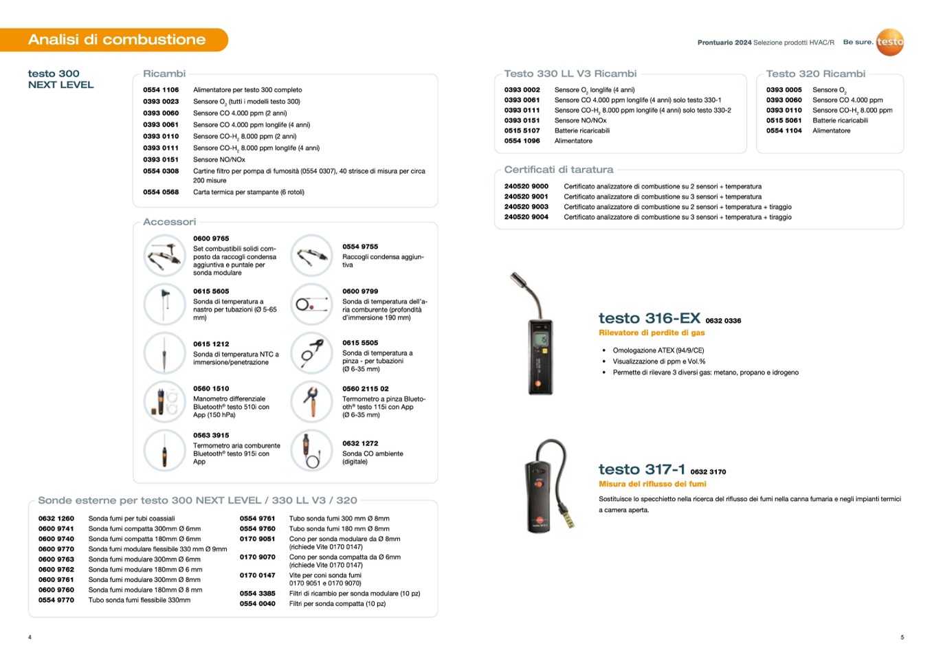 ficato analizzatore di combustione su 2 sensori + temperatura