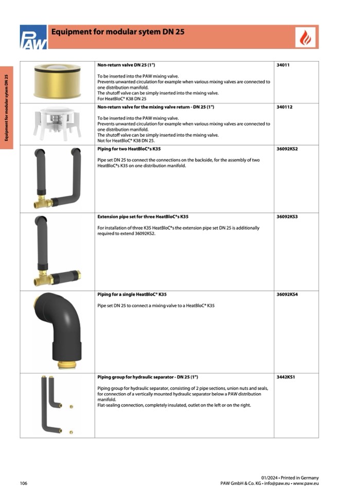 For installation of three K35 HeatBloC®s the extension pipe set DN 25 is additionally