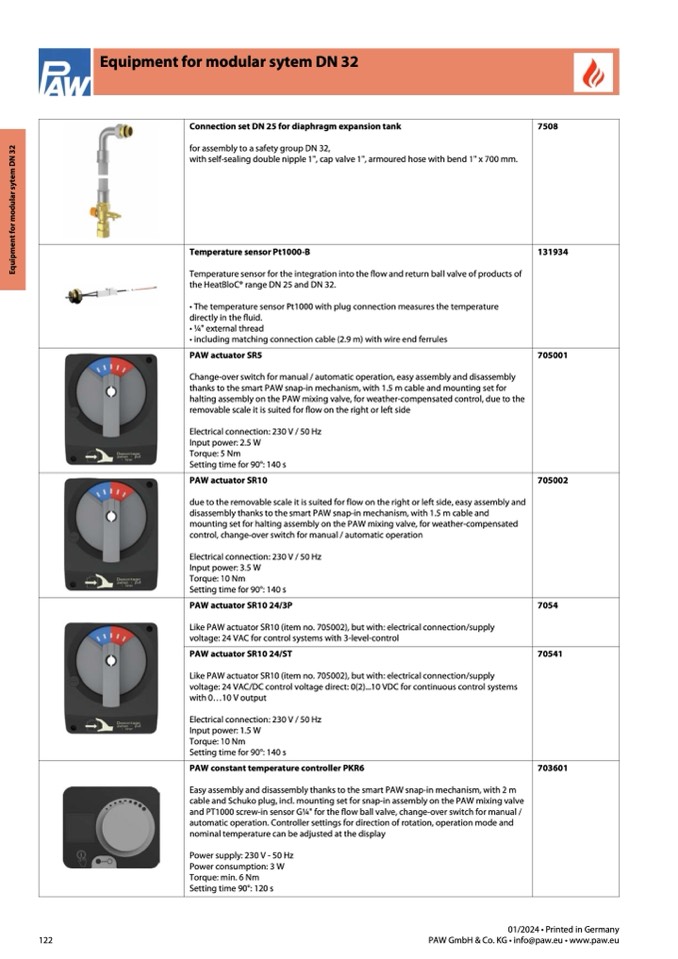 Like PAW actuator SR10 (item no. 705002), but with: electrical connection/supply