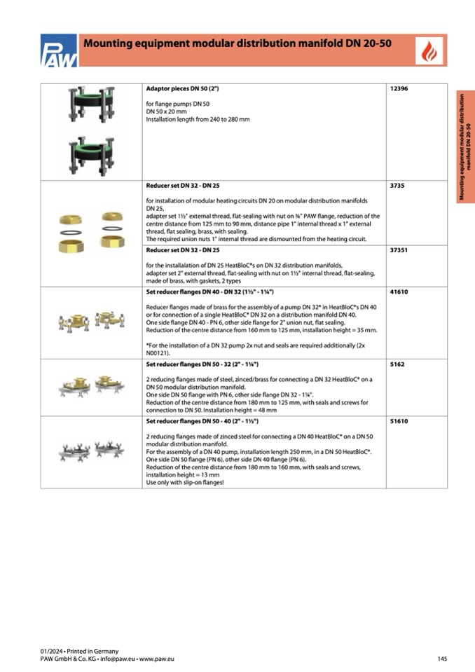 for the installalation of DN 25 HeatBloC®s on DN 32 distribution manifolds,