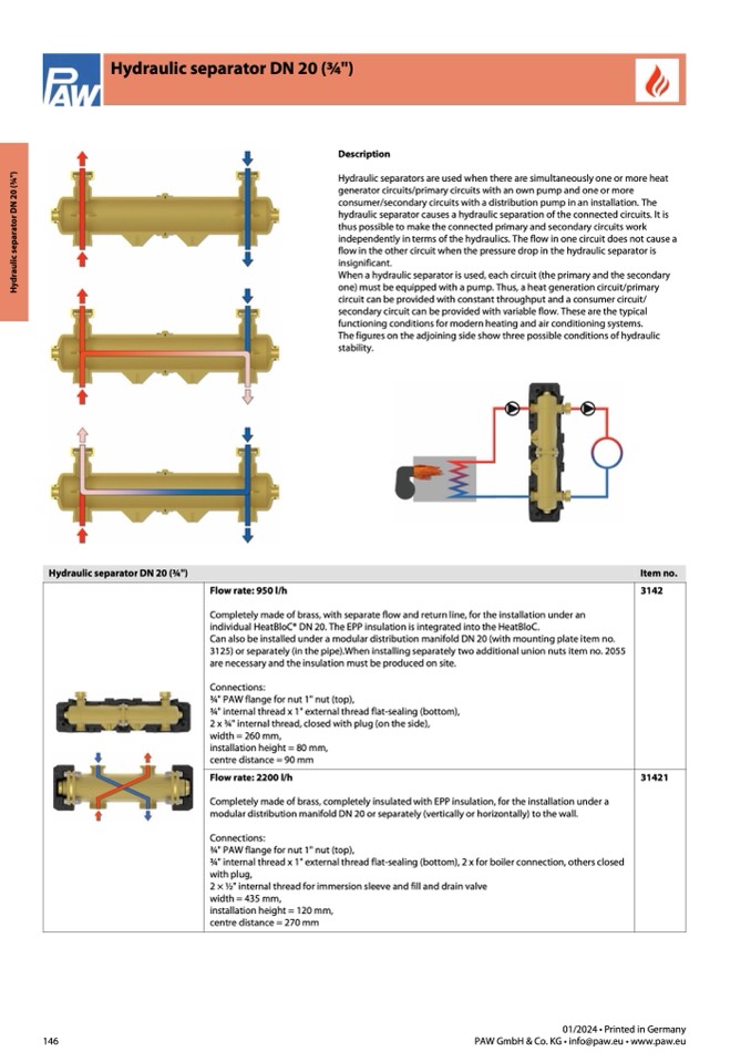 Hydraulic separator DN 20 (3⁄4")